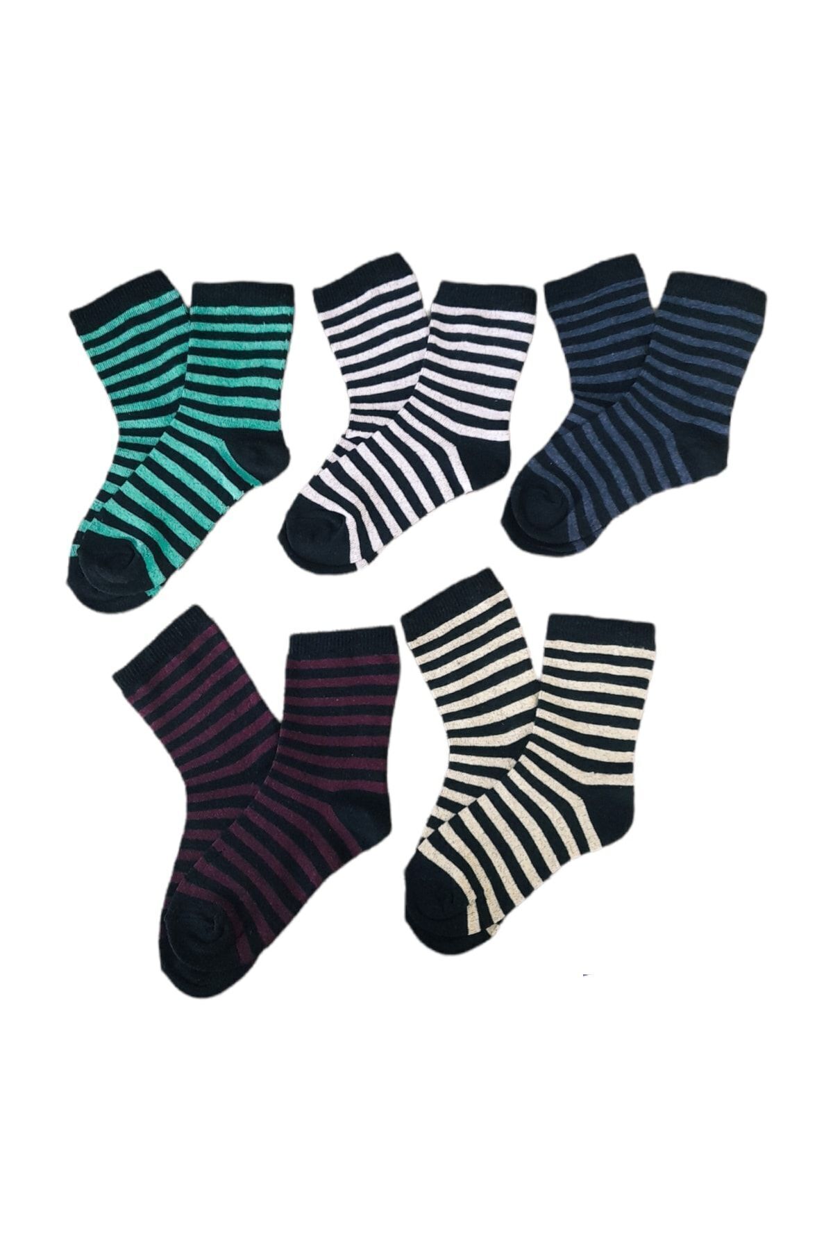 Pamuklu Çember Desenli Çocuk Soket Çorap 5 Çift